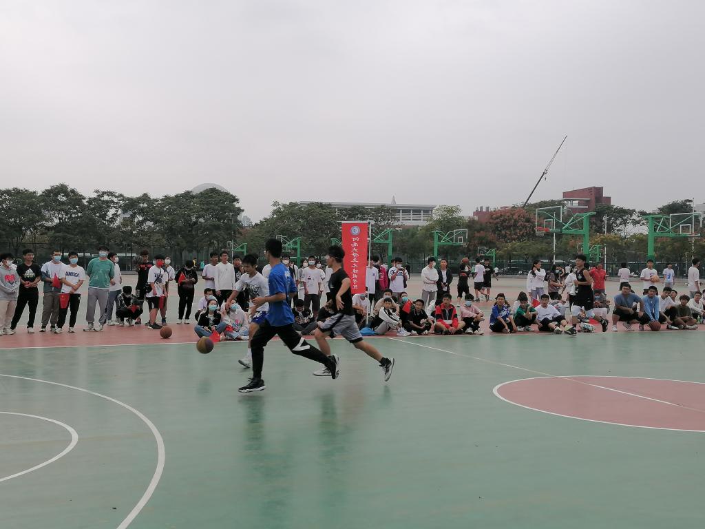 2022级“以球会友”篮球友谊赛于金明校区东篮球场顺利举行。辅导员魏森杰老师和2022级全体本科生为队员们加油助威。