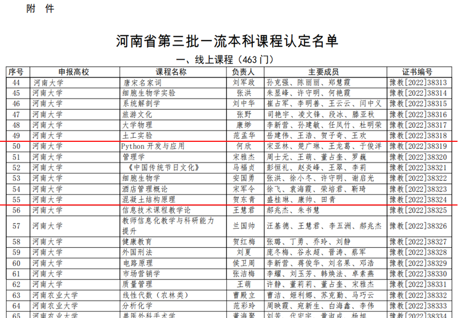 贺东青教授主讲的《混凝土结构原理》及范孟华副教授主讲的《土工实验》2门课程,被认定为省级线上一流本科课程。