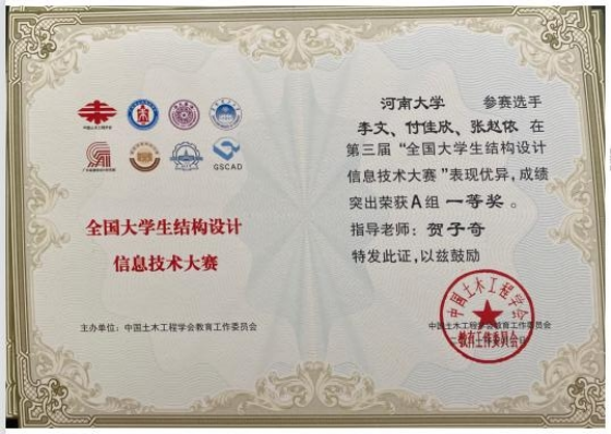 In order to improve the quality of innovative and applied talents training for civil engineering and related specialties and promote BIM practical teaching in Colleges and universities, sponsored by the Education Committee of China Civil Engineering Society and Tsinghua University civil and Water Conservancy College, the civil engineering and Transportation College of South China University of technology, the Civil Engineering College of Harbin University of technology, the Civil Engineering College of Xi'an University of construction technology The third national college students structural design information technology competition 2020-2021, CO sponsored by Guangdong civil architecture society, Guangdong Architectural Design Research Institute Co., Ltd., China Construction Industry Press, civil engineering and Transportation College of South China University of technology and Shenzhen Guangxia Technology Co., Ltd., has been successfully concluded. Four teams of our college have participated in the competition and won one first prize respectively, The excellent results of 1 second prize and 2 third prize.